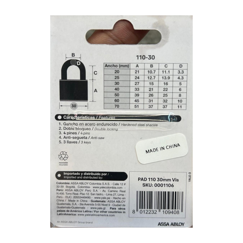 Yale Padlock 30mm # 1106