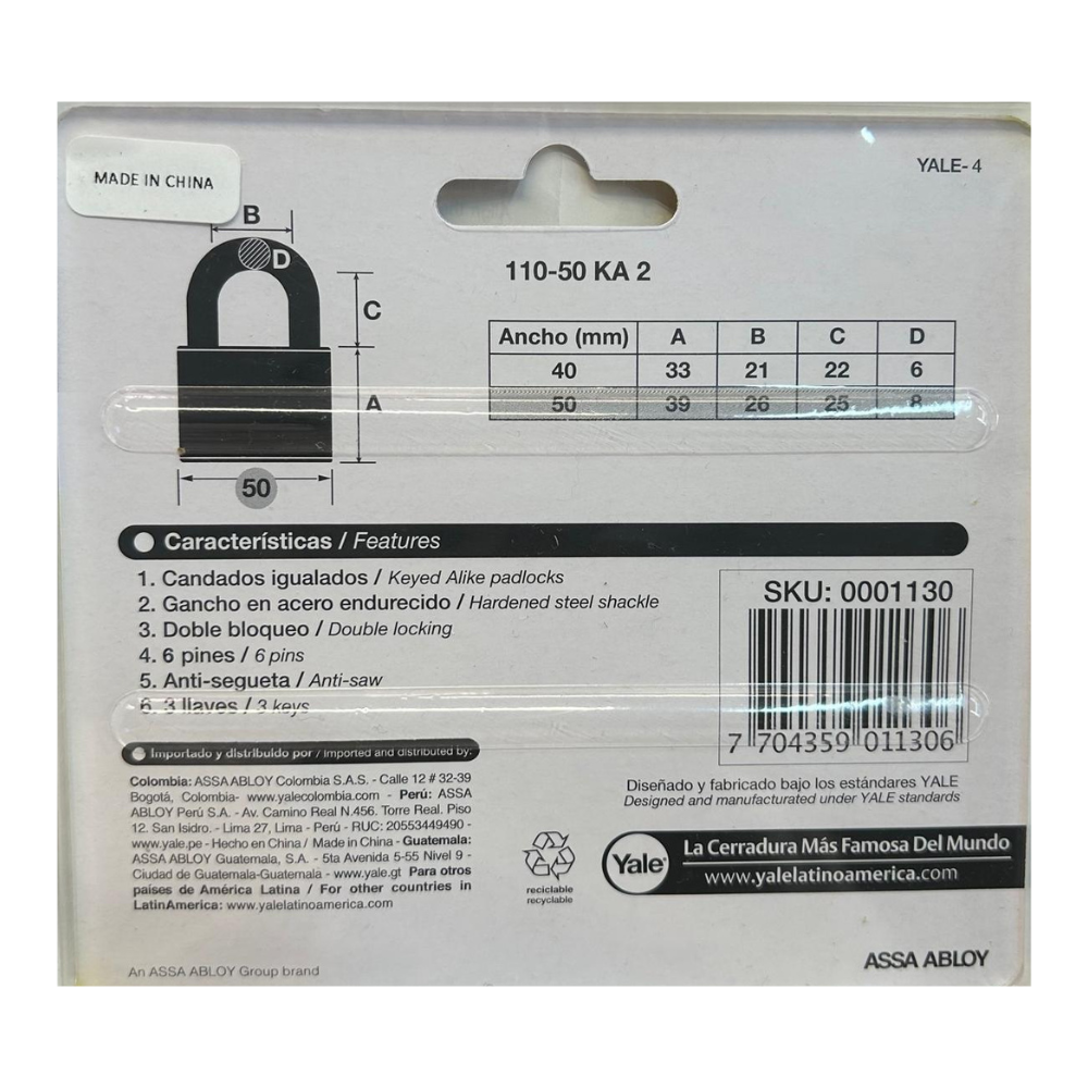 Yale Padlock 50mm 2pk